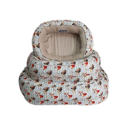Yellow and Blue Striped Shiba and Pug Bed